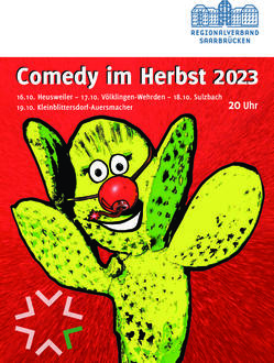 Am Montag – 16. Oktober – startet erneut die erfolgreiche, 4-tägige Reihe „Comedy im Herbst – Ein knallbunter Abend“ (Konzept: Charlie Bick), die das Kulturforum des Regionalverbandes Saarbrücken diesmal mit den Städten Völklingen und Sulzbach bzw. mit den Gemeinden Kleinblittersdorf und Heusweiler veranstaltet.