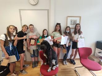 Gewonnen hat Lara Scherer (6d) mit dem der Themenstellung "Wie entsteht ein Regenbogen?".