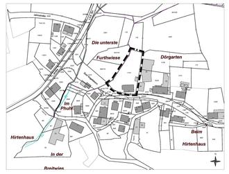 Lageplan mit Geltungsbereich, genordet, ohne Maßstab