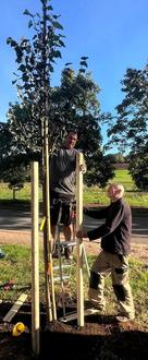 Eine neue Bank-Tisch-Kombination, die Neuordnung der Fläche mit neuer Einfassung und der Pflanzung einer Linde sowie zwei Infotafeln über Berschweiler und den angrenzenden 7-Dörfer-Weg laden zum Verweilen ein.