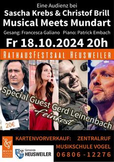 Ein großer Abend erwartet Sie mit Songs und Duetten aus Rock, Pop, Musical und Schlager der letzten Jahrzehnte. In diesem Jahr mit Special Guest Gerd Leinenbach (Band feinkost) und einem extra Block an Hits von Saarländisch bis Kurpfälzisch.