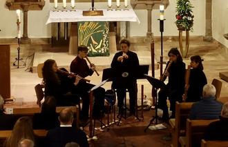 Die fünf Musikerinnen des „Neuzeit - Consort“ mit Jasmin Röder, Anouk Krüger, Sina Bayer, Anne Clement und Christina Ewald nahmen dann die Zuhörer mit auf eine Zeitreise durch die Musik des 16. Jahrhunderts, eine Zeit des musikalischen Aufbruchs zwischen Mittelalter und Barock. Eine sorgfältige Auswahl an beispielhaften Musikstücken aus England, Holland, Spanien, Italien und Deutschland und ein großes Arsenal an zeittypischen Instrumenten (Blockflöten vom Piccolo bis zum Subbass, Gambe und Viola da Gamba), ließen diese „Alte Musik“ wieder neu erklingen. Einerseits freudvolle Tanzmusik und leidenschaftliche Madrigale, andererseits wehmütige, teils düstere, Themen bestimmten das Programm, zu dem die Musikerinnen zusätzliche Erläuterungen und hilfreiche Informationen gaben. Neben der vielfältigen Instrumentalmusik beeindruckten die Lieder von John Dowland, Jakob Ardelt und Cipriano da Rore, bei denen die wunderbar weiche Mezzosopranstimme von Christina Ewald mit den begleitenden Flöten- und Gambentönen im typischen Consort-Klang der Renaissance miteinander verschmolzen.