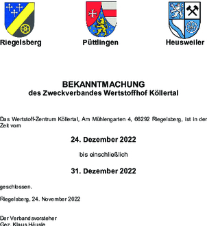 des Zweckverbandes Wertstoffhof Köllertal