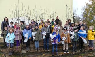 Der Monat November ist die beste Pflanzzeit für die Sträucher und Bäumchen, die durch die Feuchte im Herbst und Winter gut anwachsen und, wenn man sie entsprechend hegt und pflegt, später Früchte tragen. Es soll ein Symbol für die Kinder darstellen, die, wenn sie in der Schule schön lernen und mitarbeiten, auch später die Früchte ihrer Ausbildung ernten können. Mit der Übergabe sollen die Kinder einerseits auch an ihre Einschulung und Grundschulzeit erinnert werden, andererseits soll möglichst früh das Interesse und die Verantwortung für die Natur geweckt werden. Die Gemeinde Heusweiler erwirbt die Pflanzen von der Baumschule Fauß aus Heusweiler/Holz, die erfahrungsgemäß sehr gute Qualität gewährleistet. Damit die Bäumchen und Sträucher auch fachkundig gepflegt werden, erklärten Vertreter des Obst- und Gartenbauvereins und Mitarbeiter des Gemeindebauhofs den Kindern und Eltern, wie man die Pflanzen zurückschneidet. Die Übergabe der Bäumchen und Sträucher fand im Rahmen einer kleinen Feierstunde am Donnerstag, den 17.11.2022 in den Grundschulen Dilsburg, der Dependance Eiweiler und in der Erich-Kästner-Grundschule in Holz statt. Alle Kinder der ersten Klassen hatten ein kleines Liedchen und ein Gedicht eingeübt, um die Eltern, Gäste und den Bürgermeister zu empfangen.