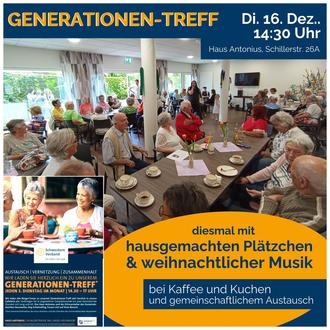 für den kommenden Dienstag, den 16.12.2025 laden wir Sie ab 14:30 Uhr zu unserem traditionellen Generationentreff ins Haus Antionus, Schillerstraße 26a, ein.