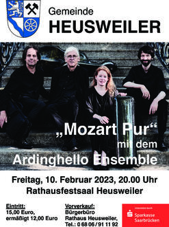 Das Ardinghello Ensemble/Freiburg bestehend aus Karl Kaiser-Flöte, Annette Rehberger-Violine, Sebastian Wohlfarth-Viola und Johannes Berger-Violoncello präsentiert in seinem Programm "Mozart Pur" vier Kompositionen, die zu den Spitzenwerken der klassischen Kammermusik zählen.