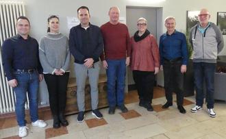 v.l.n.r.: M. Wirbel u. G. Di Napoli von der Verwaltung, Christian Ziegler, Rainer Blaß, Tanja Manuela Frey, Bürgermeister Thomas Redelberger, Stefan Groß - Verwaltung