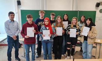 Aber nicht nur die Platzierten, auch alle anderen Teilnehmenden haben viel geleistet und sich gut verkauft. Teilgenommen haben - in der Sekundarstufe I: Max Bollinger, Max Ziegler, Torben Leischwo, Jonathan Mai, Anni Maas, Mia Kirsch, Simona Hoffmann, Milena Mootz, Samael Schaaf, Carla Zimmer, Mia-Louise Ludigs, Joline Frank, Jonas Ihme. Und in der Sekundarstufe II: Magnus Kliemann, Jennifer Hennchen, Amalia Pfahler, Mika Schütz, Kimberly Podevin, Sarah El-Massri, Anna Haupenthal, Jonas Tyb´l.