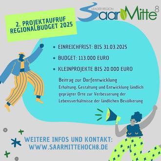 Da aktuell noch Restmittel in Höhe von 113. 000 Euro zur Verfügung stehen, können sich Projektträger erneut um Fördermittel aus dem GAK-Regionalbudget 2025 bei der LAG 8 SaarMitte bewerben. Der 2. Aufruf endet am 31. März 2025.