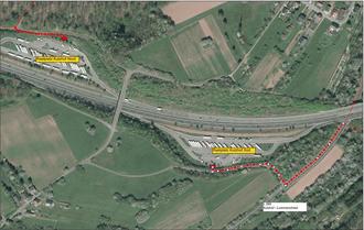 Die Verlegung beginnt im Bereich der Zufahrt zum „Stangenwald“. Die Trasse führt weiter über den Feldwirtschaftsweg bis zum Rastplatz „Kutzhof Nord“. Der Feldwirtschaftsweg muss während den Bauarbeiten für Fahrzeuge und Fußgänger gesperrt werden.