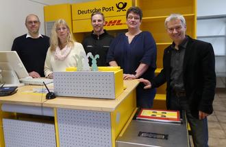 Bürgermeister Thomas Redelberger besuchte die neue Filiale der Deutschen Post und wünschte dem Mitarbeiterteam viel Erfolg und gutes Gelingen.