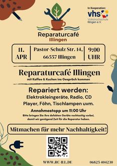 Zum nächsten Reparaturcafé treffen wir uns am Samstag, 11.04.2026, um 09:00 Uhr in der VHS Illingen, Pastor-Schulz-Straße 14. Unsere Reparaturcafés bieten eine entspannte Atmosphäre, in der defekte Alltagsgegenstände gemeinsam repariert werden – unten in der Werkstatt oder oben im Café. Es geht um gegenseitige Unterstützung, Selbsthilfe, Beratung und gemeinsames Werken. Falls sie Geräteunterlagen oder nötiges Zubehör haben, bringen sie die Sachen bitte mit. Mehr dazu unter www.rc-illingen.de, neuerdings gehen wir auch Näharbeiten und Flickwerk an. Unser Angebot besteht jeden 2. Samstag im Monat von 09:00 bis 13:00 Uhr in der VHS Illingen e.V., Pastor-Schulz-Straße 14. Ehrenamtlich engagieren – gemeinsam etwas bewegen! Sie wollen sich aktiv für Nachhaltigkeit, Gemeinschaft und sinnvolle Projekte einsetzen? Dann sind Sie bei uns genau richtig! Das Reparaturcafé Illingen lebt vom Engagement vieler helfender Hände und wir freuen uns über jeden, der unser Team verstärken möchte. Warum mitmachen? Es geht nicht nur um das Reparieren selbst, sondern um viel mehr: Müll vermeiden & Ressourcen sparen, Wissen weitergeben & voneinander lernen, Gemeinschaft erleben & neue Kontakte knüpfen, ein Zeichen für Nachhaltigkeit setzen und vieles mehr. Was Sie mitbringen sollten? Sie müssen kein Profi sein – wichtig ist die Lust, sich einzubringen. Derzeit suchen wir vor allem Reparaturhelfer:innen. Auch technikaffine Menschen als IT-Lotsen oder Social-Media-Unterstützer:innen sind herzlich willkommen! Sie möchten dabei sein? Dann melden sie sich ganz unkompliziert bei uns! Kontakt: info@rc-ill.de oder Telefon: 06825 404230. Oder kommen sie einfach beim nächsten Termin vorbei und lernen uns persönlich kennen. Wir freuen uns über neue Gesichter, frische Ideen und viele helfende Hände. Gemeinsam für mehr Nachhaltigkeit – mach mit im Team des Reparaturcafés Illingen!