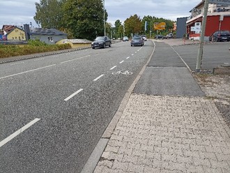Ein Befahren des Schutzstreifens durch Nicht-Fahrräder ist nur im Bedarfsfall erlaubt: