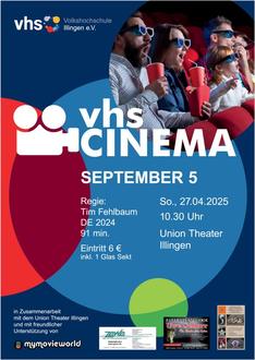 Am Sonntag, den 27. April 2025, 10:30 Uhr, Union Theater Illingen spielen wir „SEPTEMBER 5“, Regie: Tim Fehlbaum, Deutschland 2024, 91 min. Als eine Gruppe US-amerikanischer Sportjournalisten von den Olympischen Sommerspielen 1972 in München berichtet, kommt es zu einem Terroranschlag und mehrere israelische Athleten werden als Geiseln genommen. Das „authentische“, „fesselnde“ und „klaustrophobische“ Kammerspiel über Medienethik und moralische Dilemmata ist „ein unverzichtbares Seherlebnis“. Es wurde vielfach nominiert und ausgezeichnet, v.a. für den besten Film, besten Schnitt und für das Schauspiel. Der Eintritt kostet 6 €, inklusive einem Glas Sekt. „VHS CINEMA“ ist eine Veranstaltungsreihe der Volkshochschule Illingen e.V. in Zusammenarbeit mit der VHS Lebach e.V., dem Union Theater Illingen, mit freundlicher Unterstützung von Fußbodentechnik Uwe Schorr, Zewe Meß- und Trocknungstechnik GmbH sowie Schmuckgestaltung Kerstin Schuppener, die an drei Sonntagen in diesem Semester Einblicke in besonders interessante Dokumentar- oder Spielfilme geben möchte. Am Sonntag, den 18. Mai 2025 zeigen wir „THE ROOM NEXT DOOR“, Regie: Pedro Almodovar.