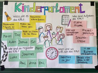 Spielerisch erarbeiteten die Mitglieder*innen dabei ein buntes Plakat als Übersicht für die Grundschule. Darauf sind wichtig Informationen zu finden: „wer sind die Mitglieder im KIPA, welche Themen wollen wir 2023 angehen, wo und wann finden unsere Sitzungen statt uvm;. Zu finden ist dieses Infoplakat in Zukunft übrigens im Eingangsbereich der Grundschule - für jedes Kind sichtbar.
