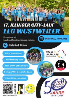 Aufgrund der aktuellen Baustelle am Illgrund findet der Illinger City-Lauf in diesem Jahr rund um das Hallenbad in Illingen statt. Die Gemeinde Illingen und die LLG Wustweiler laden herzlich zum 17. Illinger City-Lauf am Samstag, 31. Mai 2025 ein.