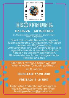 Wir würden uns sehr freuen, euch bei diesem Anlass begrüßen zu dürfen und gemeinsam den Start des JUZ „Katakombe“ zu feiern.