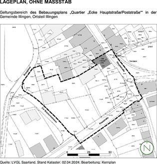 Aktuell beurteilt sich die planungsrechtliche Zulässigkeit nach dem Bebauungsplan „Ortsmitte Illingen I“ (1994) und „Ortsmitte Illingen VII, Teilbereich Verbindungsstraße“ (2020). Danach ist die Planung nicht realisierungsfähig. Es bedarf daher der Aufstellung eines Bebauungsplanes.