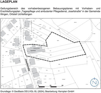 Jedermann kann den vorhabenbezogenen Bebauungsplan mit Vorhaben- und Erschließungsplan „Tagespflege und ambulanter Pflegedienst, Josefstraße”, bestehend aus der Planzeichnung (Teil A), dem Textteil (Teil B), dem Vorhaben- und Erschließungsplan, der Begründung sowie dem schalltechnischen Gutachten, im Rathaus der Gemeinde Illingen, Hauptstraße 86, 66557 Illingen, Zimmer Nr. 214 während der allgemeinen Dienststunden einsehen und über dessen Inhalt Auskunft verlangen.