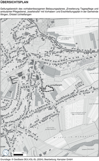 Der Gemeinderat der Gemeinde Illingen hat mit Beschluss vom 15. Mai 2025 den vorhabenbezogenen Bebauungsplan mit Vorhaben- und Erschließungsplan „Tagespflege und ambulanter Pflegedienst, Josefstraße“ gem. § 10 Abs. 1 BauGB als Satzung beschlossen. Dieser Beschluss wird hiermit gemäß § 10 Abs. 3 des Baugesetzbuches (BauGB) ortsüblich bekanntgemacht. Mit dieser Bekanntmachung tritt der vorhabenbezogene Bebauungsplan mit Vorhaben- und Erschließungsplan in Kraft.