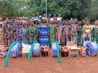 Am vergangenen Montag wurden vier von der „Arbeitsgemeinschaft für Benin Illingen“ (AG Benin) finanzierte Motorpumpen an eine Gruppe von Gemüsebauern übergeben. Die Zeremonie fand im Rathaus von Toviklin in Anwesenheit des Bürgermeisters Rigobert Tozo und seiner Stellvertreter statt. Mühsam schleppen die Gemüsebauern in Benin in der Regel das Wasser aus Bächen, Tümpeln und Brunnen in Eimern und Kannen zu ihren Feldern. Wegen Wassermangels reicht die spärliche Ernte meistens nur für den Eigenbedarf aus. Ihren großen Wunsch, die Arbeit durch Wasserpumpen zu erleichtern und so einen größeren Ernteertrag zu erzielen, konnten wir nun erfüllen. Vier Vereinigungen erhielten eine tragbare Wasserpumpe, die das Wasser aus den üblichen Reservoirs mittels Schläuchen auf die Felder pumpt. So kann die Ernte um Einiges ertragreicher werden, die Qualität des Gemüses und die der Ernährung der Menschen steigt, die Ernte kann so auch auf dem Markt verkauft werden. Nicht zuletzt steigen die Verdienste und es können junge Leute eingestellt werden.