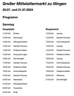 Vom 20-21.07.2024 lädt Andreas der erste von Hübgen zusammen mit den Gutsherren von Alt, Mario dem stattlichen und Bruder Benedikt von Illingen zum Mittelaltermarkt zu Illingen.