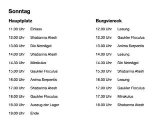 Auch wird es wieder eine Feuershow geben. Diese steuern diesmal die Hexen der Anima Serpentis bei und feiern mit dieser Darbietung Premiere auf dem Burgplatz.