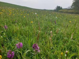 Artenreiches Grünland mit Breitblättrigem Knabenkraut am Sulzbach bei Urexweiler (Foto: Norman Wagner).