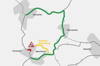 Eine Umleitung ist eingerichtet und führt über die L 130 (Urexweiler), die L 292 (Mainzweiler) sowie die L 141 (Welschbach). Die Umleitung in Gegenrichtung verläuft entsprechend.