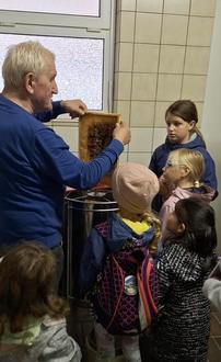 „Die faszinierende Bienenwelt“, ein Mittmachangebot des Obst- und Gartenbauvereins Merchweiler, das super viele Kinder in die Welt der Bienen und des Honigs einlud. Es ist immer wieder faszinierend wie eigentlich ein Bienenvolk funktioniert. Oder welche „Berufe“ teilen sich die Bienen? Und wie kommt eigentlich der Honig morgens beim Frühstück auf unser Brot? Das fandet ihr gemeinsam mit Imker Helmut Pelka und seinem Team heraus und habt einen spannenden Vormittag von der Bienenwabe, über die Honigproduktion bis hin zur Herstellung eigener Wachskerzen erlebt. Ganz schön schwer so eine Honigwabe! Aber wie bekommt man den Honig da jetzt raus? Erst mal den Deckel (Wachs) abmachen und danach ab in die Schleuder. Hier ist noch echte Muskelkraft gefragt, doch die Kids hatten sehr viel Spaß bei der Honigproduktion, vor allem als es zum Probieren ging. Habt ihr schon mal einen Imkerkaugummi gegessen? Im Supermarkt ist der natürlich nicht erhältlich, dafür aber bei der Honigproduktion. Mit einem leckeren Honigtasting, Honigbroten und selbstgepresstem Apfelsaft wurde die harte Arbeit belohnt. Mhh lecker! Beim Kerzen herstellen war dann noch eure Fingerfertigkeit gefragt. Aus dem Bienenwachs durften die Kinder ihre eigene Kerze rollen und natürlich mit nach Hause nehmen. Als kleines Abschiedsgeschenk bekam dann noch jedes Kind ein Informationsheft über die Welt der Bienen und eine kleine Kostprobe des flüssigen Golds mit nach Hause. Wir sagen Danke für die Mühe, die Herzlichkeit und die Liebe zum Detail, die der Obst- und Gartenbauverein Merchweiler und Helmut Pelka in diesen Tag investiert haben! Wir kommen gerne wieder!