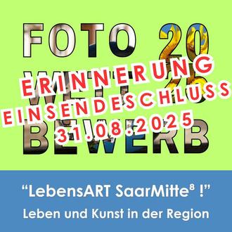 Sie können noch bis zum 31.08.2025 Ihre Fotos per Mail an die Geschäftsstelle der LAG SaarMitte8 einreichen. Unter allen Einsendungen wählt eine Jury dreizehn Bilder aus, die das Leben und die Kunst in der Region zeigen. Diese Auswahl wird in einem regionalen Kalender 2026 veröffentlicht. Zusätzlich sind für die drei besten Fotos Geldpreise vorgesehen. Die Vorstellung der Bilder mit Preisverleihung findet im Rahmen einer Vernissage statt.