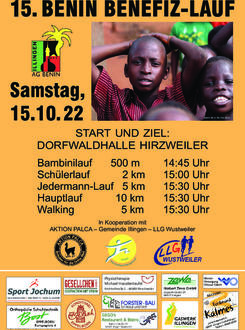 Zum 15. Benin-Benefiz-Lauf am Samstag, den 15. Oktober 2022 lädt die AG Benin wieder alle Freunde und Fans des Langstreckenlaufs und unseres gemeinsamen Projektes recht herzlich ein. Endlich läuft es wieder, so der Vorsitzende der Illinger Arbeitsgemeinschaft für Benin Hans Dieter Schwarz. Auf der landschaftlich abwechslungsreichen Streckenführung rund um Hirzweiler ist für jede/n was dabei: der Bambinilauf über 500 m startet um 14.45 Uhr, der Schüler:innenlauf über 2 km um 15.00 Uhr, der Jedermann und Jedefrau-Lauf über 5 km um 15.30 Uhr, ebenso der Hauptlauf über 10 km und der Walkingwettbewerb über 5 km. Start und Ziel ist die Dorfwaldhalle in Hirzweiler. Wegen der Computerauswertung, wird um unverbindliche Voranmeldung bis einschließlich Freitag, 14.10.2022 auf der Homepage der Langlaufgemeinschaft Wustweiler: www.llgwustweiler.de/Beninlauf oder telefonisch unter: 06825/409127 gebeten. Der Beninlauf ist etwas sehr Besonderes, denn ganz Illingen läuft, um bedürftigen Kindern in Toviklin eine vollständige Schulbildung zu ermöglichen! Sie ist und bleibt die Grundvoraussetzung, der Armut zu entkommen. Die lebenswichtigen Güter Wasser, Nahrung und Gesundheit sichern das Überleben der Menschen in Benin. Die von uns mitfinanzierten Bauprojekte sichern Nachhaltigkeit. Demnächst starten die Beratungen für ein neues Projekt. Die AG Benin ist eine Kooperation der Gemeinde Illingen mit den Gruppen: Aktion Palca, Gewerbeverein Uchtelfangen, Arbeiter-Samariter-Bund, Katholische Kirchengemeinde St. Josef, Solidargemeinschaft Hirzweiler, THW Illingen und der Langlaufgemeinschaft Wustweiler. Seit 2004 betreut sie Schulkinder in Toviklin. Wir haben den Bau einer Krankenstation gefördert. Darüber hinaus hat die Aktion Palca eine Schule in Tannou Gola errichtet. Wir freuen uns auf alle, ob Fan und Zuschauer:in oder Mitläufer:in und –walker:in, die uns mit ihrem Kommen unterstützen. Der Beninlauf in Hirzweiler, eine Benefizveranstaltung, die sowohl hinsichtlich ihres Sportsgeistes als auch der gemeinschaftlichen Zielsetzung ihresgleichen sucht! Für alle, die sich gerne mit einer Spende beteiligen möchten, ein Spendenkonto bei der Sparkasse Neunkirchen, IBAN: DE30 5925 2046 0021 0000 34, BIC: SALADE51NKS und der Bank 1 Saar, IBAN: DE62 5919 0000 0058 921009 BIC: SABADE5S ist eingerichtet, als Verwendungszweck bitte: „11.09.03/6VW120 Spende AG Benin“ angeben. Weitere Infos unter: 0176/13423483 oder 06825/ 409127.