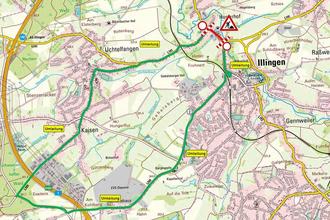 Der Verkehr wird für die Dauer der der Instandsetzung des Kreisverkehrsplatz an der Polizei (Walkmühle) von Wustweiler kommend über die L 112 in Fahrtrichtung Dirmingen, auf die B10 in Richtung Eppelborn, auf die L 300 in Fahrtrichtung Wiesbach, auf die L 141 Fahrtrichtung Humes, auf die L 266 Fahrtrichtung Lummerschied, zurück auf die L 265 Fahrtrichtung Illingen umgeleitet.
