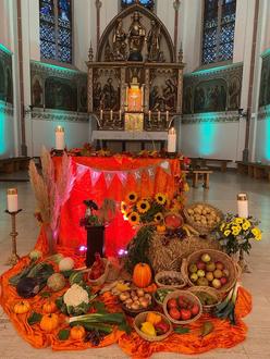 Das Schmücken der Altäre, in den Kirchen der Pfarreiengemeinschaft Uchtelfangen, zu diesem Fest hatten viele fleißige Hände übernommen. Den Küsterinnen und Küstern und alle ehrenamtlichen Helfern, die durch ihre Erntegaben und besonderen Schmuck den Dank für die Gaben Gottes zum Ausdruck brachten, wird herzlich gedankt.