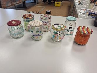 Am Montag sind wir mit unser ersten Workshop mit dem Thema Seifenbladenzauberei in die Herbstferien gestartet. In der VHS Illingen konntet ihr eure eigenen Lauge Gläser bunt gestalten. Egal ob mit Acrylstiften, Diamanten oder Tape hier war der Phantasie keine Grenzen gesetzt. Gemeinsam mit Christine konntet ihr eurer eigenes Seifenblasenwerkzeug im Großformat bauen. Dann ging es damit natürlich nach draußen! Dort angekommen wurden die Seifenblasenwerkzeuge direkt getestet und der Zauber begann. Je nach Größe und Form des Seils und der Netze, die am Werkzeug befestigt waren entstanden viele kleine oder große lange Seifenblasen. Zum Experimentieren hatte Christine für euch allerhand Werkzeuge dabei: ein Nudelsieb, kleine und große Ringe, einen leere Flasche mit Mullbinden am Ende oder eure eigenen Hände. Unser Fazit: zum Seifenblasen machen eignen sich viele unterschiedliche Dinge - man muss nur kreativ werden. Habt ihr schon einmal mit einem Strohhalm Luft in eine Seifenblase gepustet um sie größer zu zaubern? Das und vieles mehr konnten die Teilnehmenden hier erleben. Am Ende bekam jeder sein selbstgestaltetes Glas mit Seifenblasenlauge und das Seifenbladenwerkzeug mit nach Hause um dort auch auf eigene Faust Blasen zu zaubern. Wir sagen danke für einen tollen Workshop und freuen uns aufs nächste Mal!