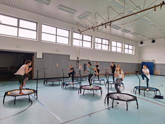 Beim Jumping Fitness Workshop im Ferienprogramm der Gemeinde Illingen in Kooperation mit dem Kneippverein Illingen sind 8 Teilnehmerinnen vor Freude gesprungen! Der neue Trendsport, bei dem man sich federleicht fühlt und ganz nebenbei noch was für die Fitness macht erfreute sich großer Beliebtheit. Gesprungen wurde auf einem kleinen, sechseckigen Trampolin mal schnell und mal langsam natürlich zu fetziger Musik. Dabei studierten die Springerinnen hüpfend und mit viel Freude eine kleine Choreographie ein. PUH! Ganz schön anstrengend und Köpfchen war auch ein wenig gefragt. Gott sei Dank wurden regelmäßige Verschnaufpausen eingelegt. Spaß hat das Hüpfen gemacht! Bist du beim nächsten Mal auch dabei, wenn wir uns zusammen glücklich springen?