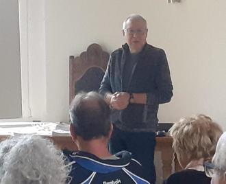 Reimund Detambel stellte versiert und überaus kompetent die derzeit gängigen Straftaten wie Enkeltrick, falscher Polizeibeamter, Gewinnversprechen, Trickdiebstahl an der Haustür, Geldwechseltrick und viele andere vor. Dabei wusste er die neusten Zahlen aus der Polizeiarbeit zu benennen und konnte an Hand von ganz konkreten Fallbeispielen die Muster der Vorgehensweisen von Straftäter:innen aufzeigen. Einige der Anwesenden kannten ähnliche Fälle bereits aus ihrem Umfeld oder über die Medien. Mit Herrn Detambel hatten sie nun einen Fachmann vor Ort mit dem sie ganz persönlich ihre Rückfragen besprechen konnten. Abschließend gab er den Gästen noch seine Empfehlungen, wie sie sich verhalten können/sollten, wenn sie in irgendeiner Form mit solchen Betrugsabsichten konfrontiert werden.