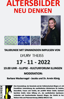 Am Donnerstag, den 17. November 2022, um 19.00 Uhr treffen wir uns ein letztes Mal in diesem Jahr im Foyer des Kulturforums Illipse zu unserer Reihe: „Altersbilder: neu denken“ mit Laura Theiss! Die Modedesignerin Laura Theiss schaut auf Veränderungen in Kleidung und Stil der Älteren über mehrere Jahrzehnte und geht der Spur nach, ob und wie sich neue Altersbilder auch in der Mode ablesen lassen. Sie kreiert zeitgemäße und zeitlose Strickkollektionen für Damen. Ihre Designs präsentiert sie in London, Paris und auf der ganzen Welt. Auch als Saarlandbotschafterin ist sie auf internationalen Bühnen zu Hause, wirbt für regionale Kunst und Künstler:innen, unser Land ist ihr eine zweite Heimat geworden. Die mutige und dennoch feminine Ästhetik (vgl. www.lauratheiss.com) im Kern ihrer Marke verleiht Strickwaren einen modernen Touch und bringt sie in die Zukunft. Sie verfolgt einen kühnen Designansatz und ignoriert herkömmliche Methoden. Jede Kollektion ist eine individuelle und fantasievolle Geschichte, die durch die sorgfältig gefertigten Stücke erzählt wird. Ihre experimentellen und innovativen Designs verbinden ihr Erbe mit den fortschrittlichen Technologien von heute. Sie möchte Kleidung schaffen, die Frauen von heute und morgen repräsentieren. Eine Verschiebung der Grenzen des Häkelns und Strickens findet dabei statt, um greifbar zu beweisen, dass Traditionen zu endlosen Möglichkeiten führen können. Es geht letztlich gar nicht so sehr um die Technik an sich, all ihre Designs folgen endlich dem Ziel, Frauen zu stärken und sie dazu zu inspirieren, nicht nur in die Zukunft zu blicken, sondern auch die Möglichkeiten zu sehen, sie zu visionieren, zu hacken, zu gestalten. Mit Blick auf den letzten gemeinsamen Talkabend in diesem Jahr zum Thema: „Alternsbilder: neu denken“, erwarten wir ein hochinteressantes Ideenspektakel und laden Sie wieder herzlich dazu ein! Der Eintritt ist frei. Weitere Infos und Platzreservierungen: 06825 409 127/-126.