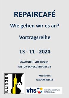 Repaircafés sind ehrenamtliche Treffen, bei denen die Teilnehmenden allein oder gemeinsam mit anderen ihre kaputten Sachen reparieren. Wieder ganzmachen statt wegwerfen, diese Idee begeistert viele. Wie können wir es angehen? Die Gemeinde Illingen möchte in Kooperation mit der VHS zu einer kleinen Vortragsreihe einladen, um den Einstieg zu erleichtern. Der Mitbegründer und Organisator des Reparaturcafés Neunkirchen und IT-Lotse Joachim Becker ist wohl einer der regional besten Berater zur Einführung von Repaircafés. „Einfach anfangen!“ – meinte er in einem Vorgespräch zu dieser Reihe, aber dann wären da noch ein paar Dinge, die man vorerst nicht außer Acht lassen sollte: Haftungsrecht, Nachbarschaftshilfe, gute Werkzeugkiste, flexible, multifunktionale Räumlichkeiten und vieles mehr. Das Rad muss nicht immer neu erfunden werden. Wir laden alle, die Interesse an der Gründung eines Repaircafés in Illingen und seinen Ortsteilen haben, sehr herzlich ein, sich das wichtigste Know-How erstmal abzuholen. Wir starten am 13. November, 20:00 Uhr, VHS Illingen, Pastor-Schulz-Straße 14. Die Teilnahme ist kostenlos. Voranmeldungen unter 06825 404230 oder 06825 409127.