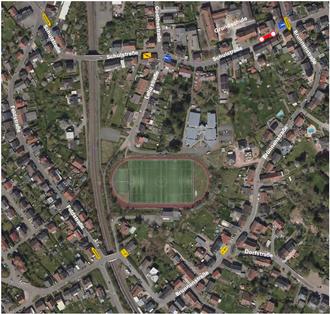 Eine Umleitung von der Beethovenstraße aus kommend erfolgt über die Brunnenstraße, Feldstraße sowie zurück in die Schulstraße.
