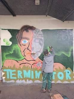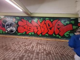 Bevor in der Tiefgarage das Sprühen beginnen konnte, mussten erst einmal die nötigen Vorbereitungen getroffen werden. Die verschmutzten Wände mussten gestrichen und abgeklebt werden. Danach kam dann endlich die erste Farbe ins Spiel. An einer gemeinsamen Namenswand konnte jeder Teilnehmer erst einmal die Buchstaben seines Namens ausmalen. So zu sagen ein erster Test in Sachen Sprühen. Für diejenigen, die an diesem Tag zum ersten Mal eine Sprühdose in der Hand hielten eine wichtige Grundlagenübung. Was passiert, wenn ich zu weit weg bin und was, wenn ich zu dicht dran bin? Welche Effekte kann man mit der Sprühdose erzielen? Das und vieles mehr konnte hier erst einmal erfahrbar gemacht werden. Für die „alten Hasen“ war diese kleine Übungseinheit eine Aufwärmübung. Danach startete dann jeder Teilnehmer an seinem Wandabschnitt mit seinem eigenen Gemälde. Nach und nach nahmen die Kunstwerke Form an. Anders als bei anderen Kunstarten ist es bei Graffiti nämlich so, dass man sich vom Hintergrund systematisch nach vorne arbeitet, da alle Farben gegenseitig deckend sind und überdeckt würden. Ein interessanter Kniff, der ein wenig Übung erfordert. Ganz am Schluss setzt man erst die sogenannten Outlines und verleiht dem Kunstwerk die nötige Tiefe und Highlights.