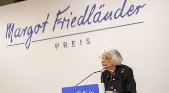 Margot Friedländer, Holocaust-Überlebende, spricht bei der Verleihung des Margot-FriedländerPreises. Foto: dpa/Fabian Sommer