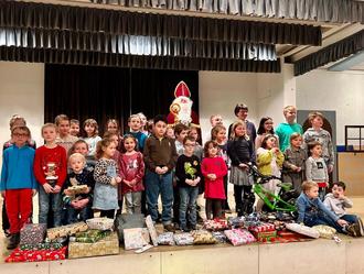 Gemeinsam mit ihren Eltern suchten sie vor der Weihnachtsfeier neuwertige Spielsachen bei sich zusammen, verpackten sie liebevoll und überreichten die Geschenke dem Nikolaus mit dem Wunsch, diese an bedürftige Kinder weiter zu schenken.