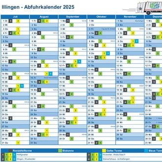 Ab der dritten Kalenderwoche 2025 werden sich die Abfuhrtermine für die Restabfall- und Biotonnen in der Gemeinde Illingen jedoch umfassend ändern. Die neuen Termine sind das Ergebnis einer Tourenanpassung des Abfuhrunternehmens PreZero und betreffen alle Ortsteile. Der EVS wird Anfang Januar 2025 nochmals über die Änderungen informieren.