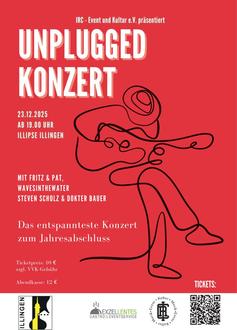 Am 23. Dezember lädt der IRC-Event und Kultur e.V. zum traditionellen Unplugged-Konzert ein – in diesem Jahr erstmals in der Illipse Illingen. Auf der Bühne stehen: WavesInTheWater / Fritz & Pat / Steven Scholz & Doktor Bauer.