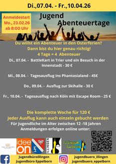 Die Anmeldung startet ab dem 23.02.2026 um 8:00 Uhr online beim Jugendbüro Eppelborn:
