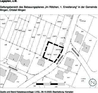 Der Gemeinderat der Gemeinde Illingen hat in seiner Sitzung am 02. Februar 2023 gemäß § 2 Abs. 1 BauGB beschlossen, den Bebauungsplan „Im Rötchen, 1. Erweiterung“ aufzustellen (siehe Anlage Geltungsbereich). In seiner Sitzung am 02. Februar 2023 hat der Gemeinderat der Gemeinde Illingen den Entwurf des Bebauungsplanes „Im Rötchen, 1. Erweiterung“, bestehend aus der Planzeichnung (Teil A) mit Textteil (Teil B) sowie der Begründung, gebilligt und die öffentliche Auslegung beschlossen.