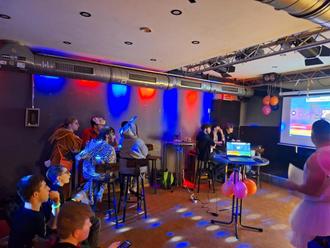 „Unsere Zahnfee“ aka Quizmaster Domenic hatte das JUZ in eine bunte Faschingswelt verwandelt und ein Quiz vorbereitet, das es in sich hatte!