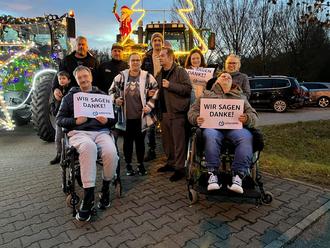 So wie die rund 80 Traktoren die nächtlichen Straßen vieler Gemeinden der Südpfalz und Region Speyer während der "Ein Funken Hoffnung"-Tour erleuchtet haben, so geleuchtet haben die Augen derer, denen auf ganz besondere Weise die großzügige Herzensspende überbracht wurden: die Bewohner, der Vorstand und die Mitarbeiter der Lebenshilfe Germersheim. Mit Applaus, Dankes-Plakaten und Jubelrufen empfingen sie am vergangenen Mittwoch eine kleine Delegation des Fuhr- und Ackerbauvereins in ihrer Tagesförder- und Wohnstätte "Tom Mutters" in Kandel. Die Landwirte und Landwirtinnen rollten extra für die Spendenübergabe mit fünf der beleuchten Traktoren an. Sebastian Fischer, Sprecher des Fuhr- und Ackerbauvereins, überreichte den Spendenscheck über 26.750 Euro an den Vorstandsvorsitzenden der Lebenshilfe Germersheim Uwe Schwind, der kurzerhand den Betrag auf 27.000 Euro aufrundete. Es sei der höchste Betrag, der durch die "Ein Funken Hoffnung"- Touren in dieser Region bislang gesammelt werden konnte. Insgesamt spendeten die Menschen 32.000 Euro. Davon kommen 5000 Euro der Geburtsambulanz des Diakonissen Krankenhaus in Speyer zu Gute. Mit der Spende für die Lebenshilfe Germersheim können nun eine Tovertafel für den Förderkindergarten in Rülzheim - kurzgesagt, ein interaktives Spiel, das die soziale Interaktion und Konzentration von Menschen mit Beeinträchtigungen fördert - sowie ein Deckenlifter für die neue Wohngruppe am Park in Wörth angeschafft werden. In der Wohngruppe werden vier Menschen mit erworbenen Hirnschädigungen die Chance haben, soweit möglich wieder an ihr vorheriges, normales Leben anzuknüpfen. Ein Deckenlifter für das Badezimmer erleichtert nicht nur den Bewohnern, sondern auch den Mitarbeitern das Leben ungemein. Das restliche Geld wird in ein neues Rollstuhl-Fahrzeug investiert.