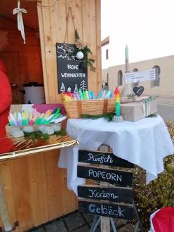 Auch der Elternausschuss der Kita Wirbelwind war erneut mit einem eigenen Stand vertreten. Die Besucher des Weihnachtsmarktes durften sich über selbst gebackenens Gebäck, auch in glutenfreier Ausführung, frisches Popcorn und wärmenden Punsch freuen. Außerdem wurden selbstgestaltete Dekoration aus Holz und schöne selbstgegossene Kerzen angeboten.